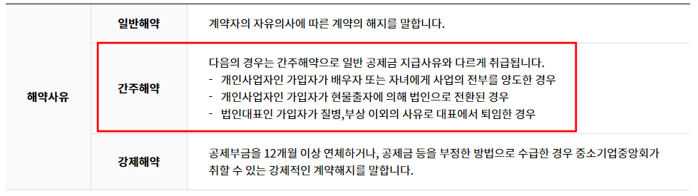 단, 업종이 주점업, 무도장, 도박장, 의료행위 아닌 안마업은 가입제한 업종입니다. 또한 부금연체를 하거나 부정수급으로 해약처리 된 후 1년이 지나지 않은 경우에도 가입할 수 없습니다.