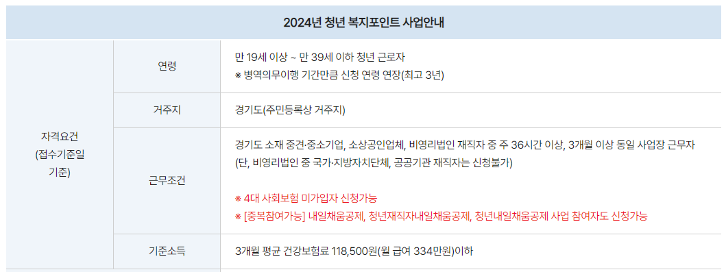 경기도 청년 복지포인트 신청조건