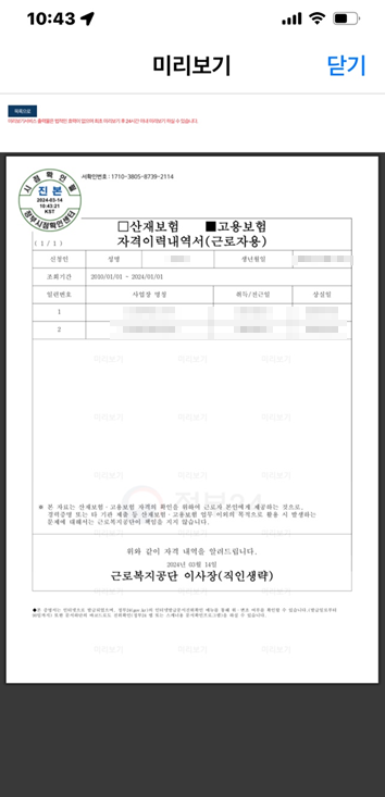 미리보기를 누르면 모바일에서도 자격이력 내역서를 확인할 수 있습니다.