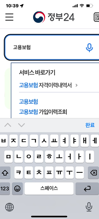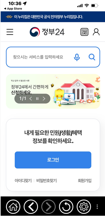 1) 모바일로 고용보험 가입이력을 조회하기 위해서는 먼저 정부24 어플을 설치해야 합니다.