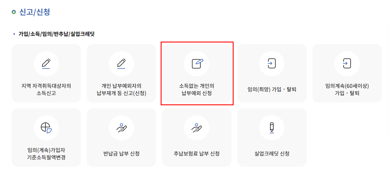 - 신청기한 : 납부예외 사유발생일로부터 다음달 15일까지 신청
