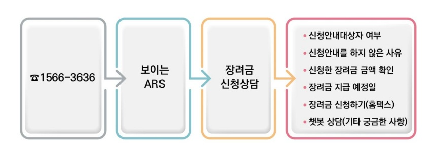 - 상담원 연결: 장려금 상담센터 1566-3636에 전화하여 상담원과 통화 후 신청 대리 요청이 가능합니다.