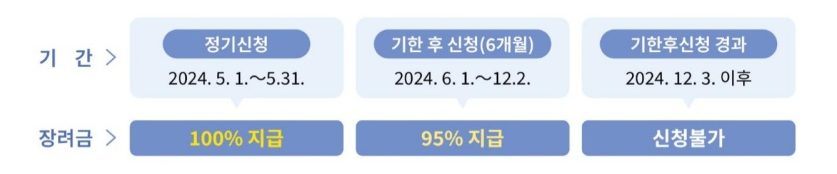 기한 후 신청을 하면 지급액이 원래 금액의 90%로 감소됩니다. 따라서 기한 내 신청하는 것이 유리하며, 부득이하게 놓친 경우에만 기한 후 신청을 고려하는 것이 좋습니다.