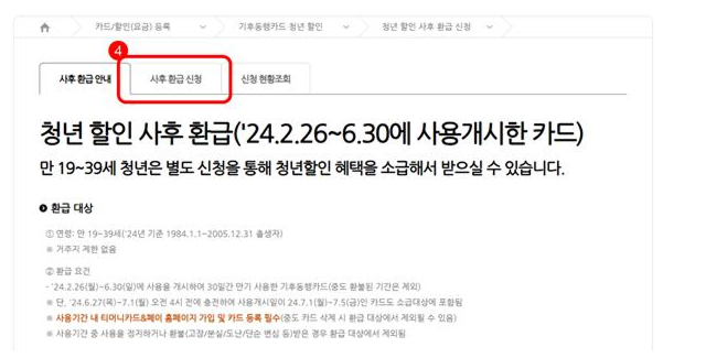 2) 청년할인 사후환급 신청하기