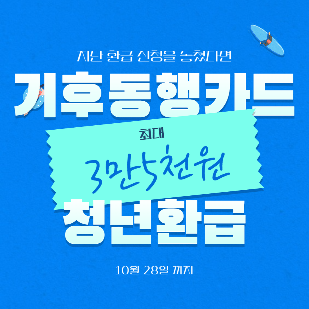 이번 기후동행카드 청년환급 신청기간은 10월 28일 16시까지 입니다. 7월에 사후환급 신청을 놓친 청년을 대상으로 다시 한번 환급 신청을 받는 중이니 지원대상은 이번 기회를 놓치지 마세요.