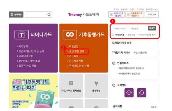 1) 티머니 홈페이지 로그인 > 청년할인 안내