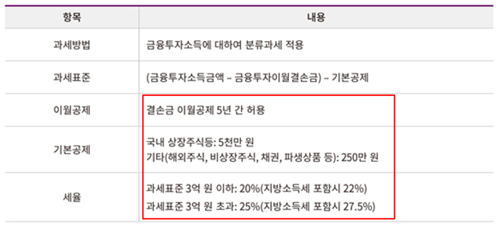 다만 원본 손실 가능서이 없는 예적금, 저축성 보험, 채권, 배당소득은 현행과 동일하게 2,000만원 이하 소득에 대해서는 14% 소득세를 부담하며, 2,000만원 초과 시 금융소득종합과세 대상이 됩니다.