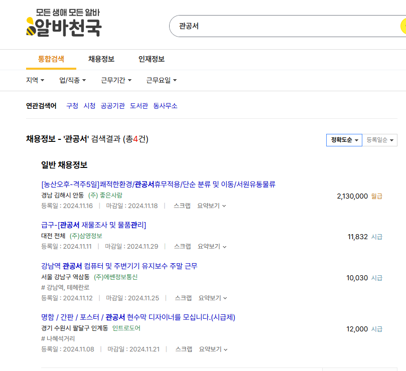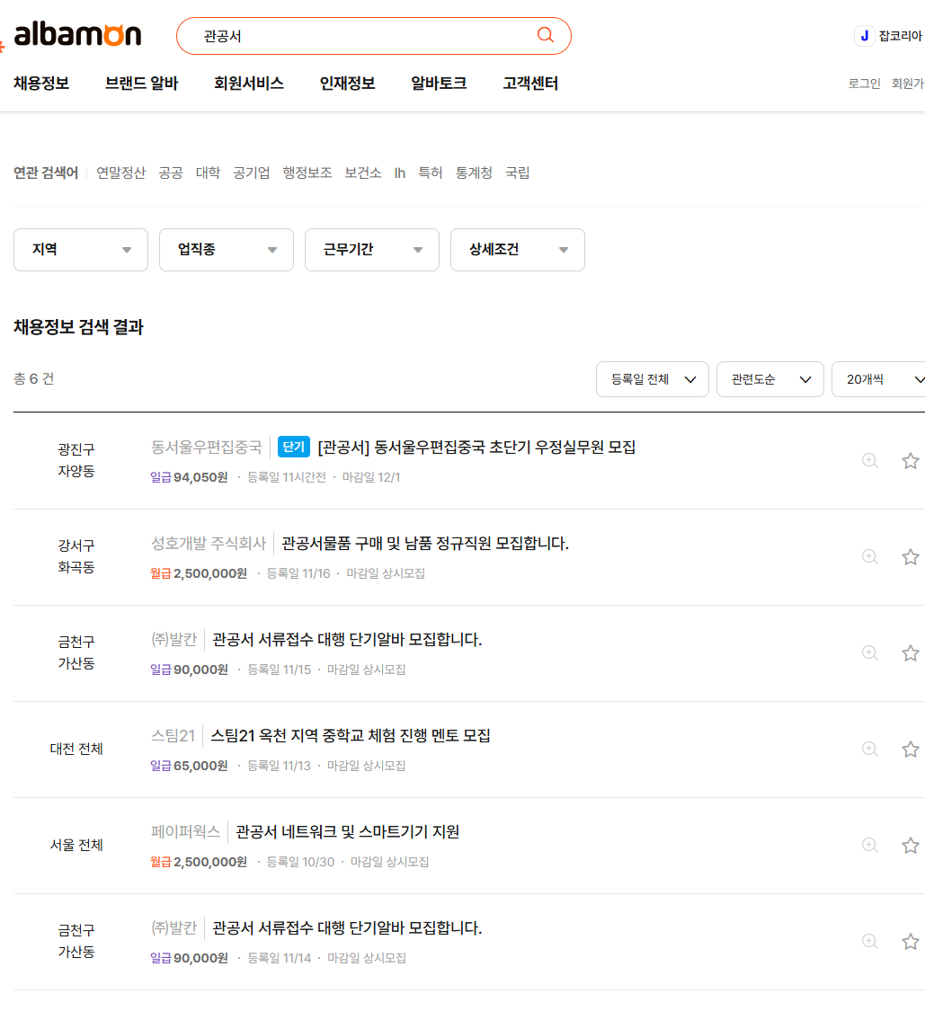 - 검색 팁: 키워드: 관공서 알바, 공공기관 아르바이트