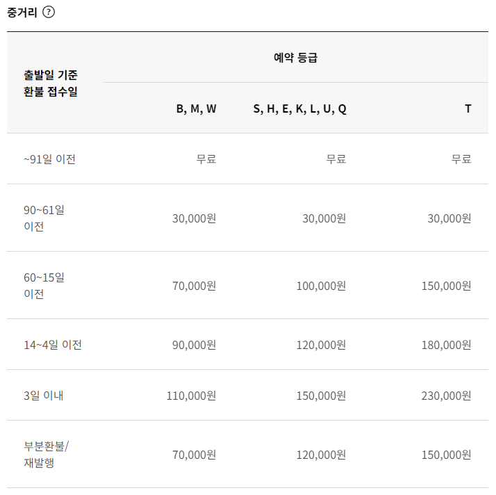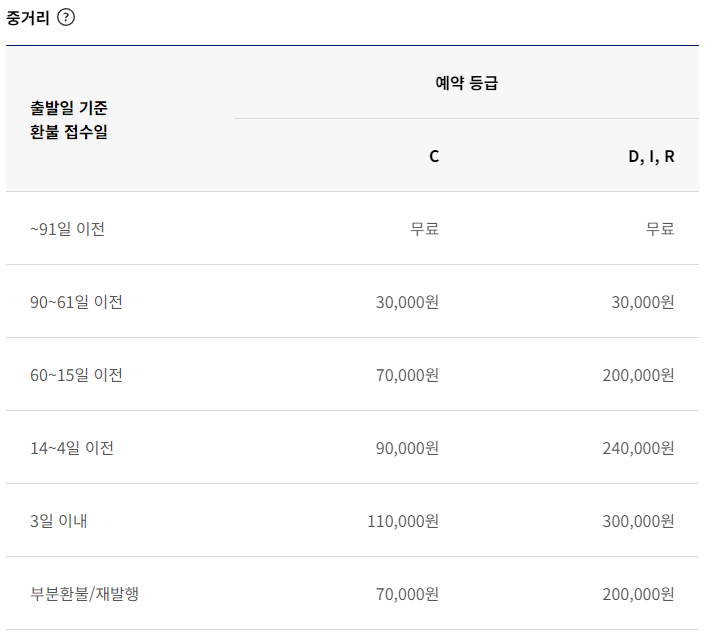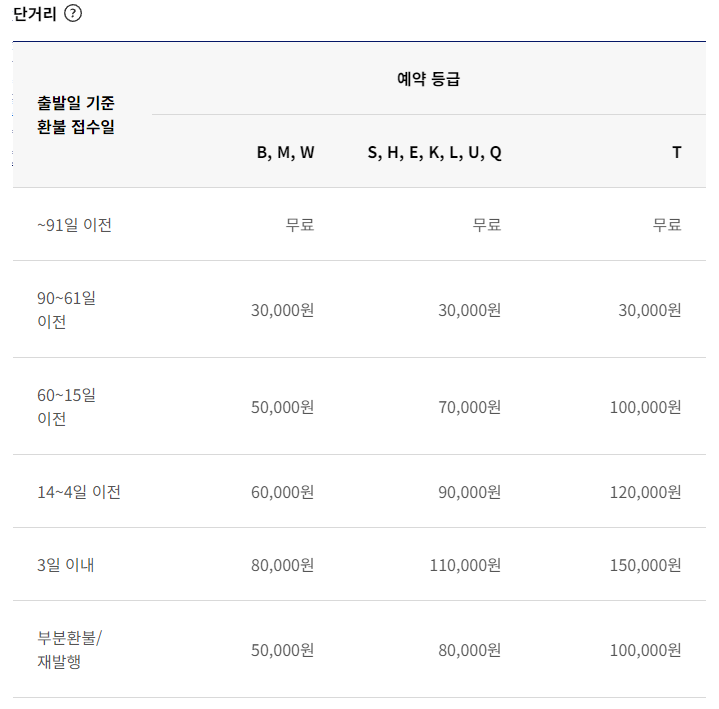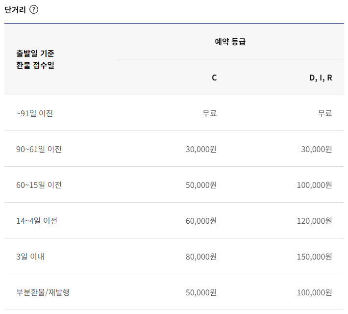 대한항공 항공권 취소 수수료