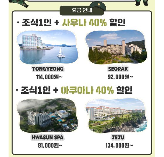 병역명문가 전용 협약 시설을 보다 저렴한 가격에 이용할 수 있습니다.