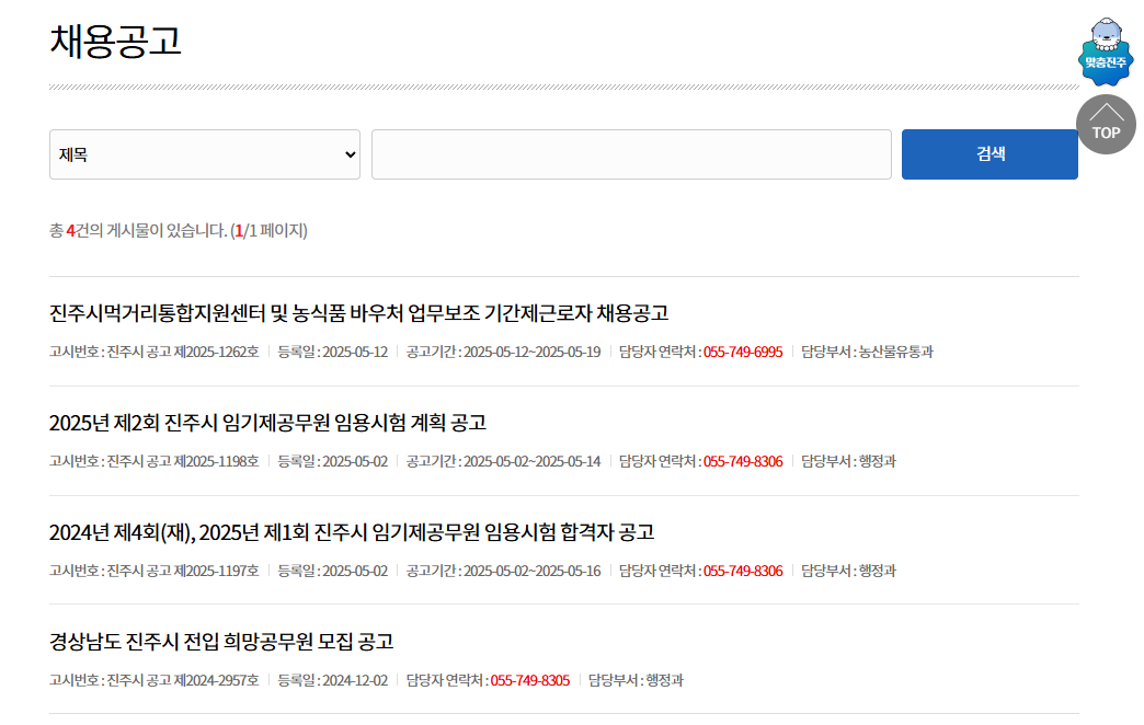 사천시 공공일자리 채용 정보 확인하는 방법