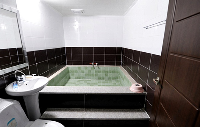 모던한 인테리어와 함께 넓은 욕조, 샤워 시설 등이 마련된 가족탕입니다. 아이와 함께 이용하기 편리하며, 깨끗하고 관리가 잘 되어 있습니다.