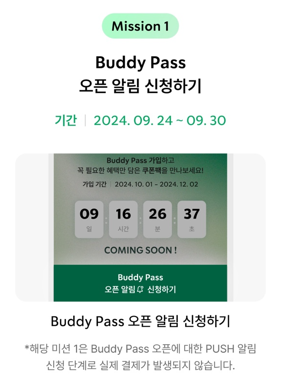 스타벅스는 버디 패스의 론칭을 기념하여 9월 24일부터 일주일간 사전 알림 이벤트를 진행합니다.