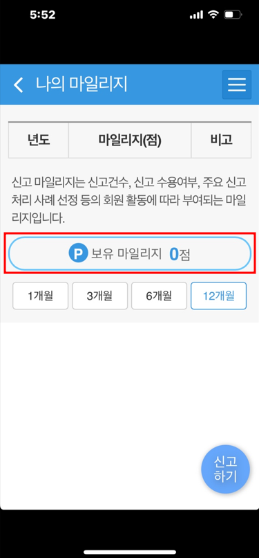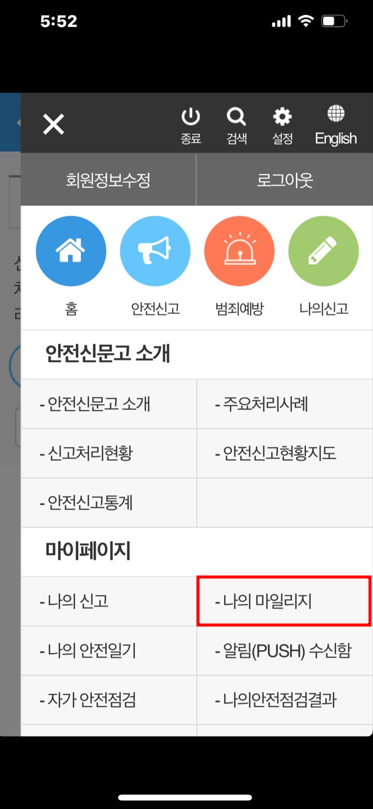 안전신문고 마일리지 조회