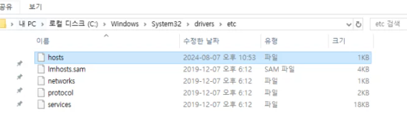 경로: 내 PC > 로컬 디스크(C:) > Windows > System32 > drivers > etc - ‘hosts’ 파일 실행하기