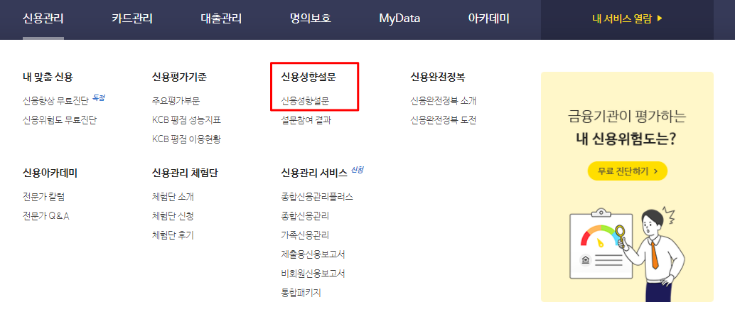 올크레딧 사이트 > 신용관리 > 신용성향설문 참여