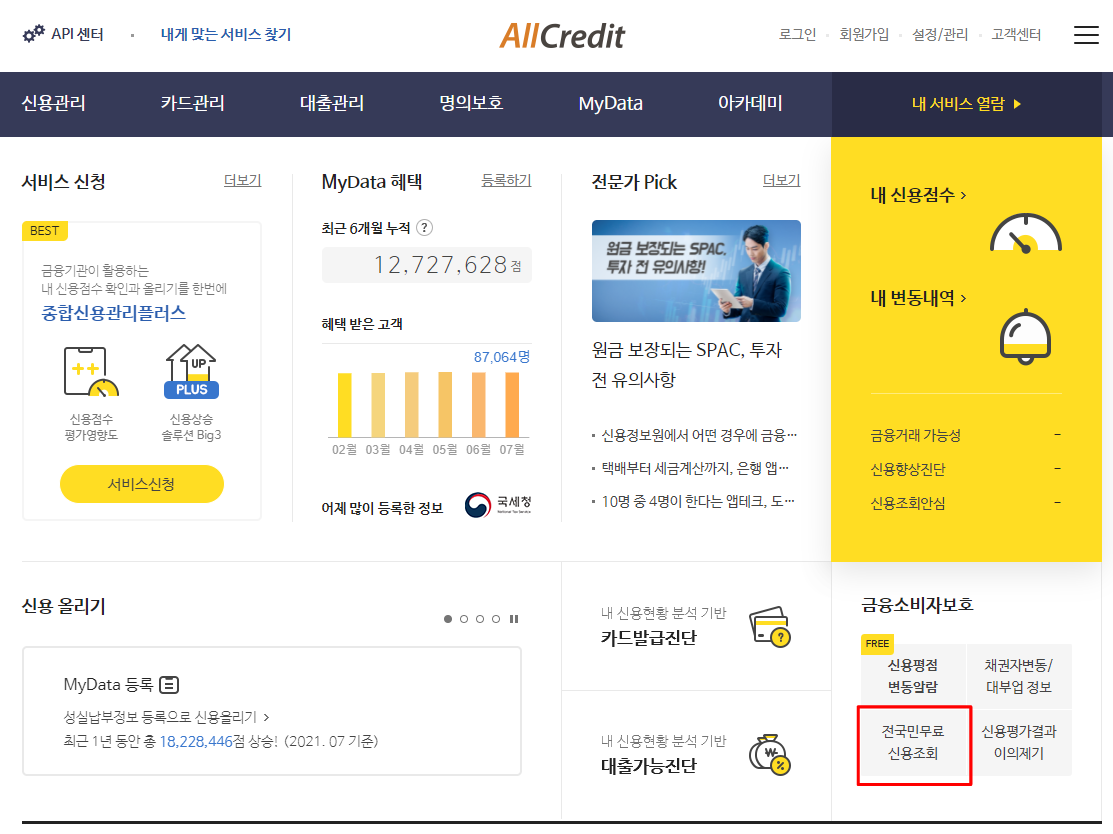 ①올크레딧 사이트 접속 > 전국민무료 신용조회