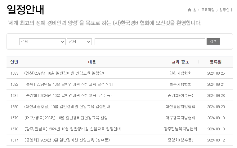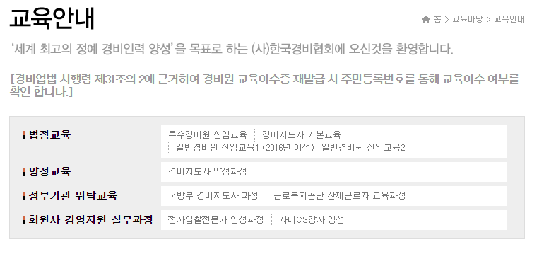 일반 경비원 신임교육 신청 방법