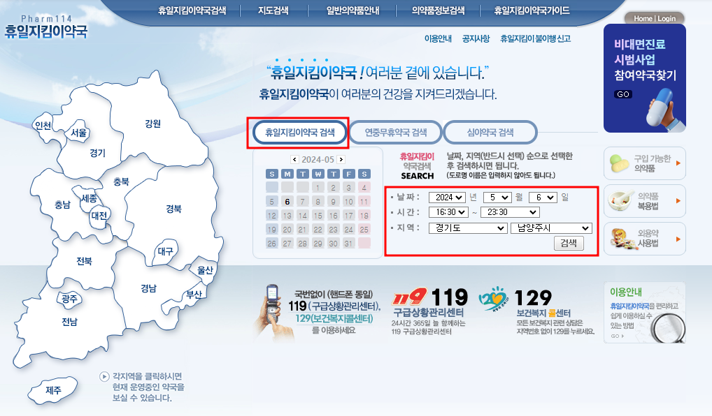 휴일 약국 찾기 이용방법