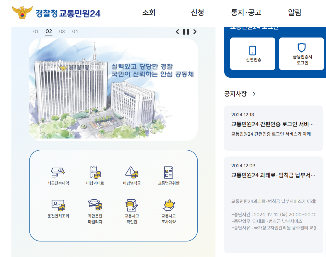 - 경찰청 교통민원24(이파인) 접속