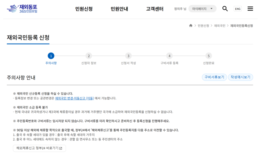 - 등록 완료 후 재외국민등록부등본 발급 가능.