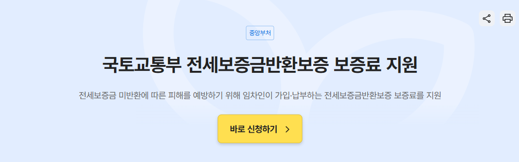 - 검색창에 ‘전세보증금 반환보증 보증료 지원’ 입력