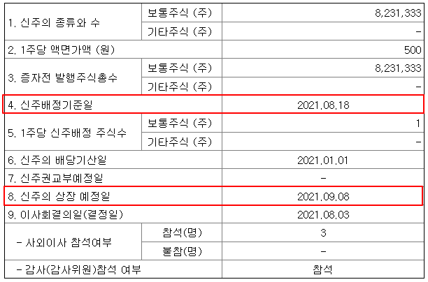 ①8월3일 무상증자 공시
