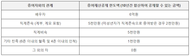 증여세 과세기준과 증여재산공제 한도액