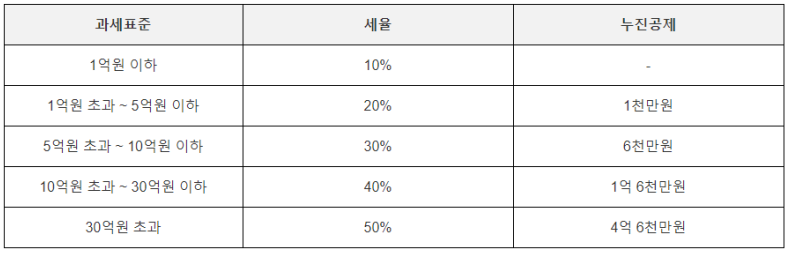 증여세 세율과 합산 금액의 예