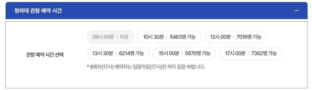 청와대의 관람 시간은 계절에 따라 다릅니다.