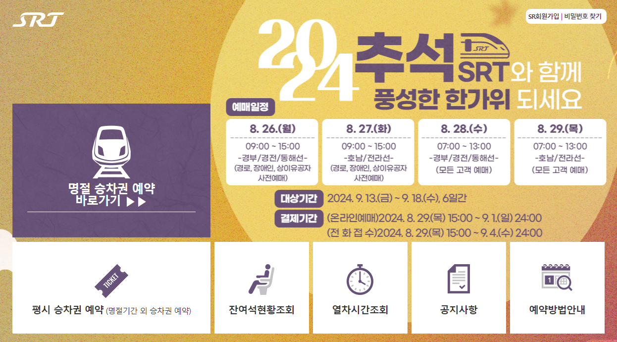 2024 추석 기차표 예매 (KTX, SRT 예매일정 방법)
