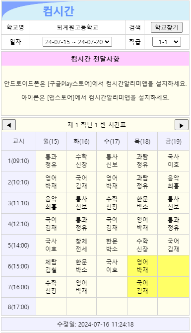 컴시간 알리미는 PC 브라우저를 통해서 시간표 열람이 가능합니다.