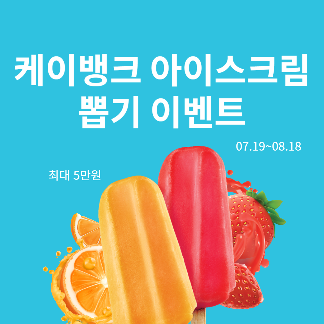 케이뱅크는 고객들에게 다양한 혜택을 제공하기 위한 이벤트를 지속적으로 진행하고 있는데요. 이번에는 무더운 여름 최대 5만원 당첨 가능성이 있는 케이뱅크 아이스크림 뽑기 이벤트를 진행한다는 소식입니다.