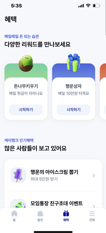2) 아래 혜택 메뉴를 클릭합니다.