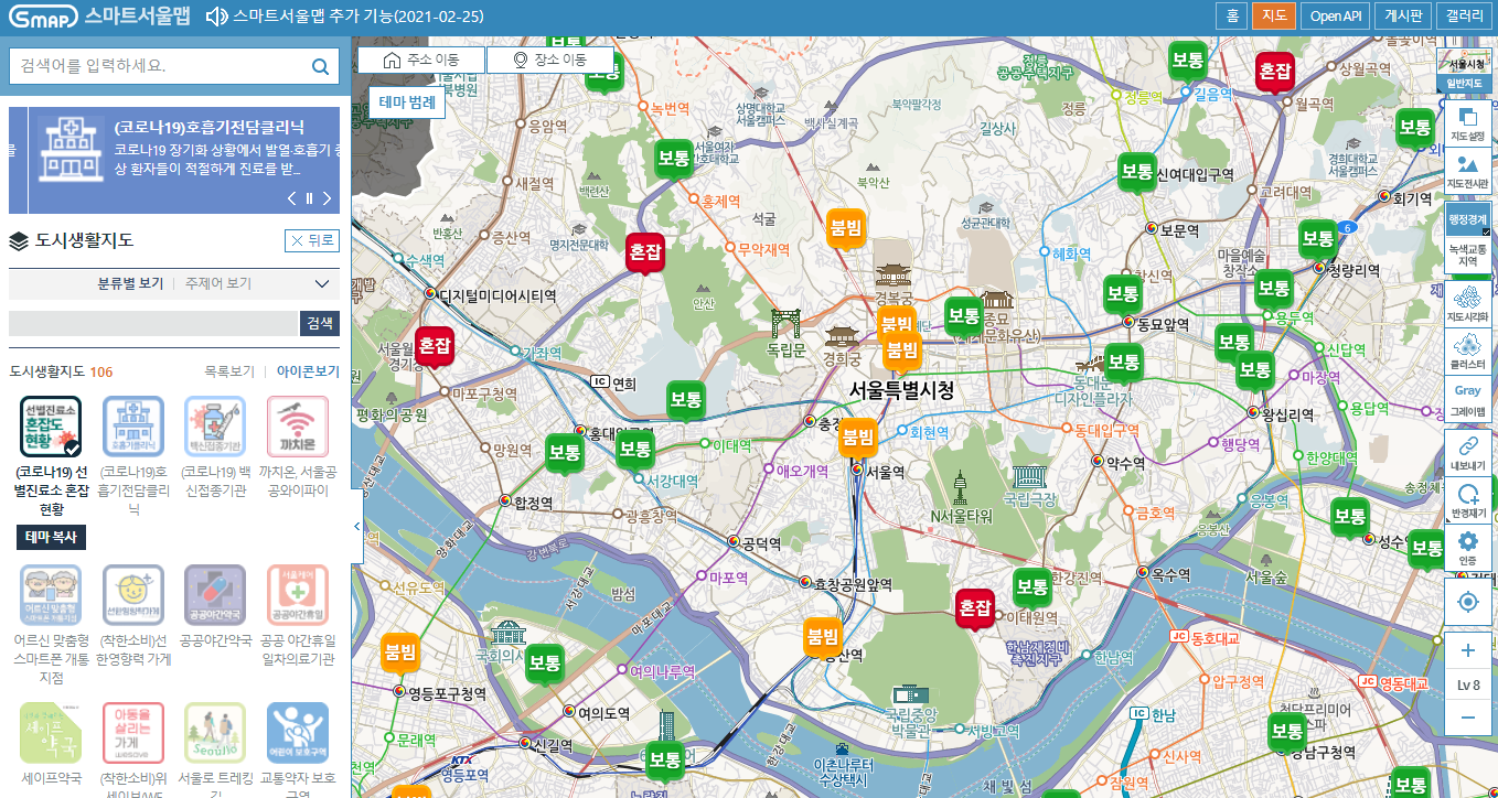 2. 선별진료소 혼잡도 확인 (스마트서울맵)