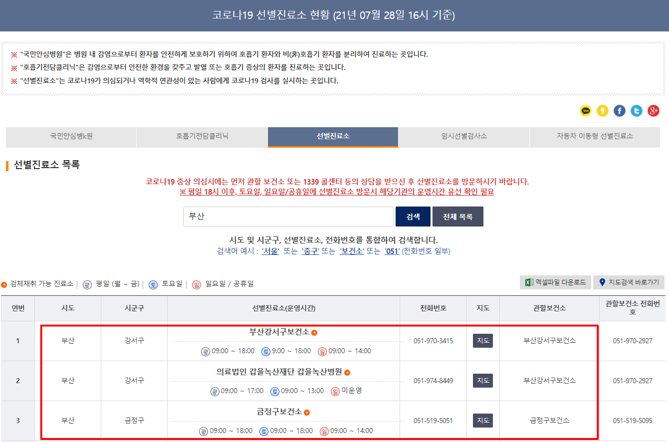 1. 코로나 선별진료소 위치 확인