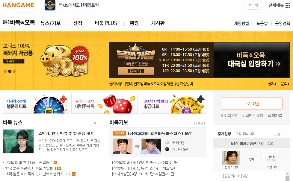- 로그인 후 "바둑" 게임 메뉴를 클릭하세요.