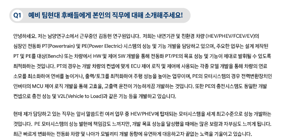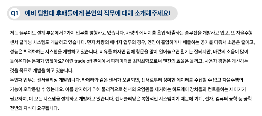현대차 입사 합격률을 높이기 위해서 먼저 입사한 선배들의 인터뷰를 확인해보세요.