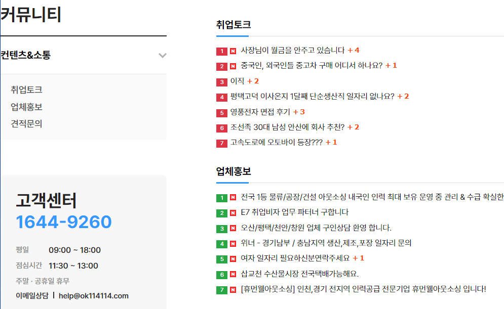 그리고 커뮤니티를 통해 취업에 관련된 이야기를 나누거나 업체홍보, 견적문의 등의 업무도 함께 진행할 수 있어요.