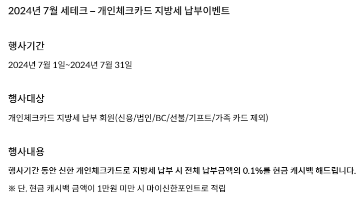 - 지방세 납부 시 납부금액의 0.1% 현금 캐시백