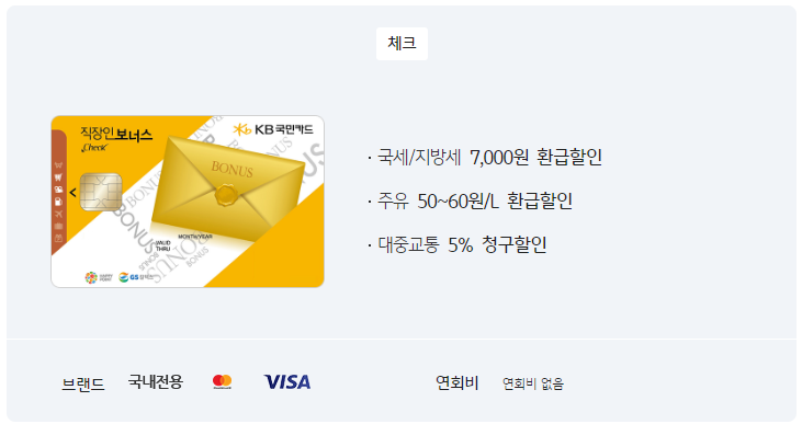 - KB직장인 보너스 체크카드