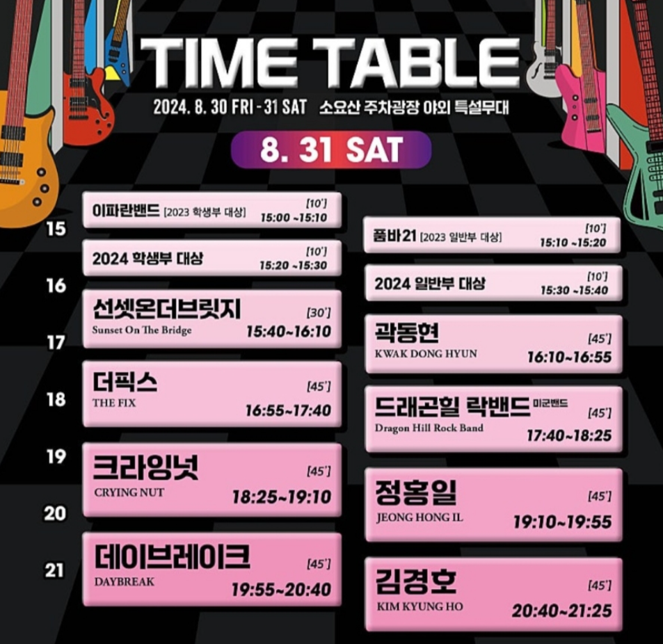 - 17:40 - 18:25: 드래곤힐 락밴드 (미군 밴드)