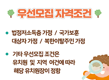 아래 조건에 해당하는 가정은 우선모집 대상이 될 수 있습니다.