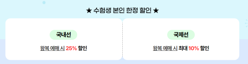 일부 노선에 한해 수험생 할인 혜택이 제공되니 각 항공사 홈페이지를 참고하세요.
