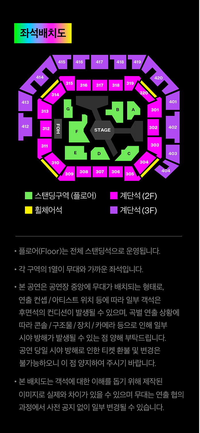 - 좌석 선택: 스탠딩석, 계단석 모두 가능